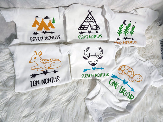 Baby milestone bodysuit and prop blanket giftset, outfit for baby, woodland theme, personalized